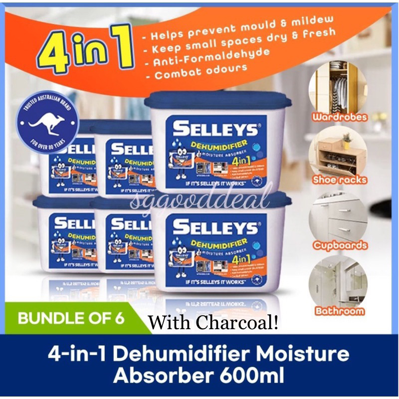 $1.65 per Piece! [Bundle of 6 Pcs] x 600ml Selleys Charcoal Dehumidifier Moisture Absorber New Packaging