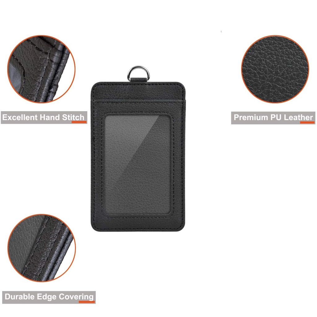 Material Quality:Very good Colour:black Nice basic ID card holder with an slot behind to put some name cards or o transit card. Classic, can’t go wrong. Excellent value for money! Order came quite quickly as well!