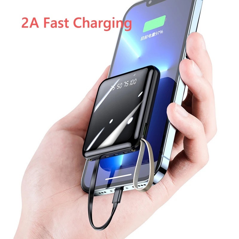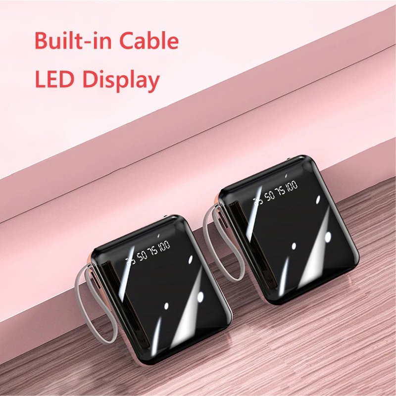 20000mAh Mini Power Bank Built in Cable Portable Powerbank iPhone 15 14 13 12 11 Mini Pro Max Plus Teachers Day Gifts Se