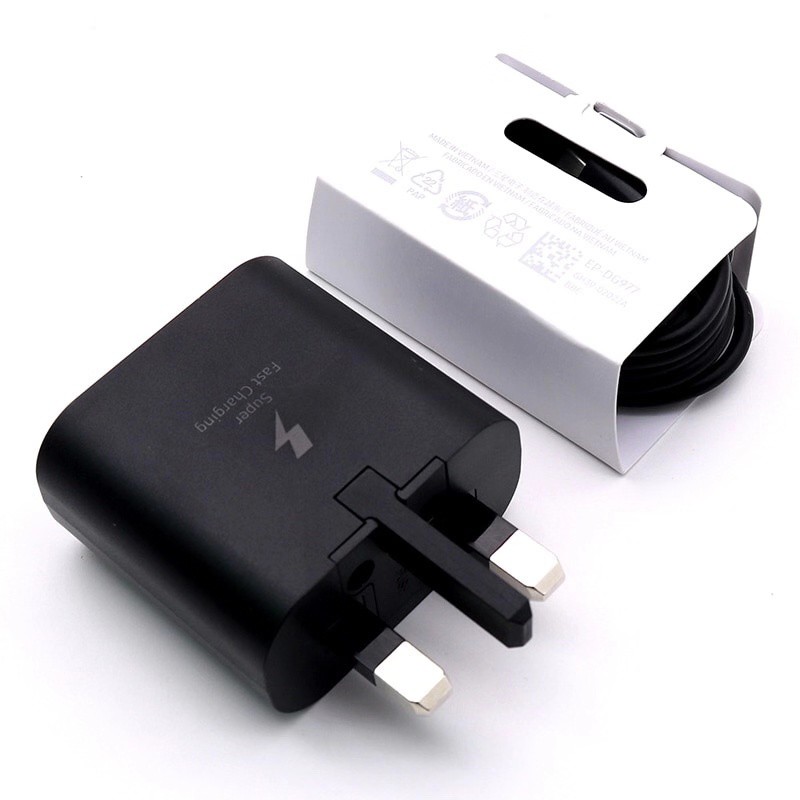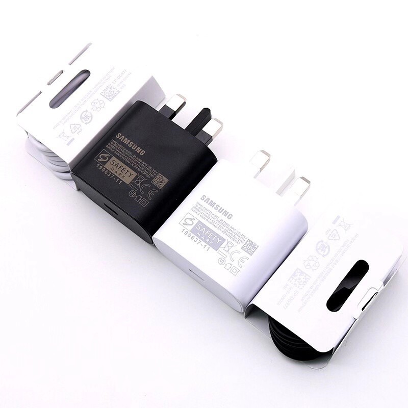 Original Samsung Super fast charger 25W PD Type C 1m/1.5m/2m Charging Cables UK Adapter USB C Cable For Samsung S20 Ultra S21 Plus Note 10 Note20 A90 A80 Travel Charger