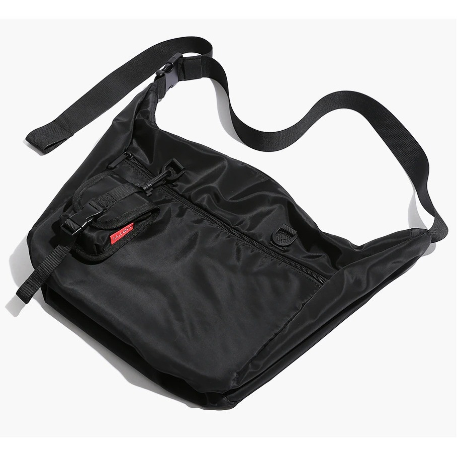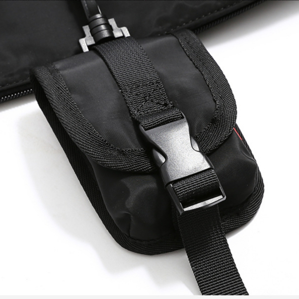 It looks pretty cool and I like that the material doesn't get wet too easily to protect my belongings.There is a small-sized pouch attached to it.Great buy!