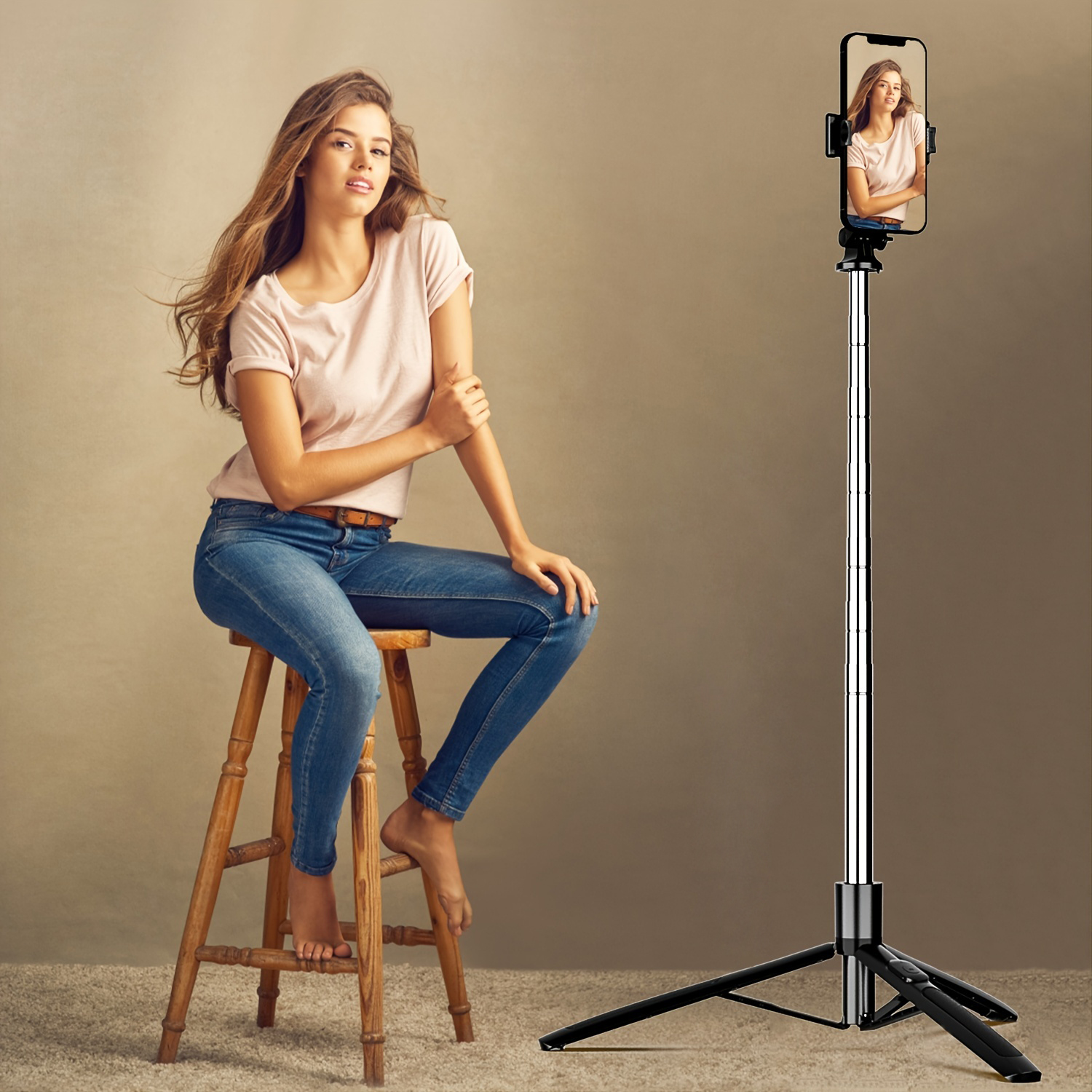 Extendable Selfie Stick Tripod with Wireless Remote and Phone Holder,Group Selfies/Live Streaming/Video Recording Compatible with All Cellphones