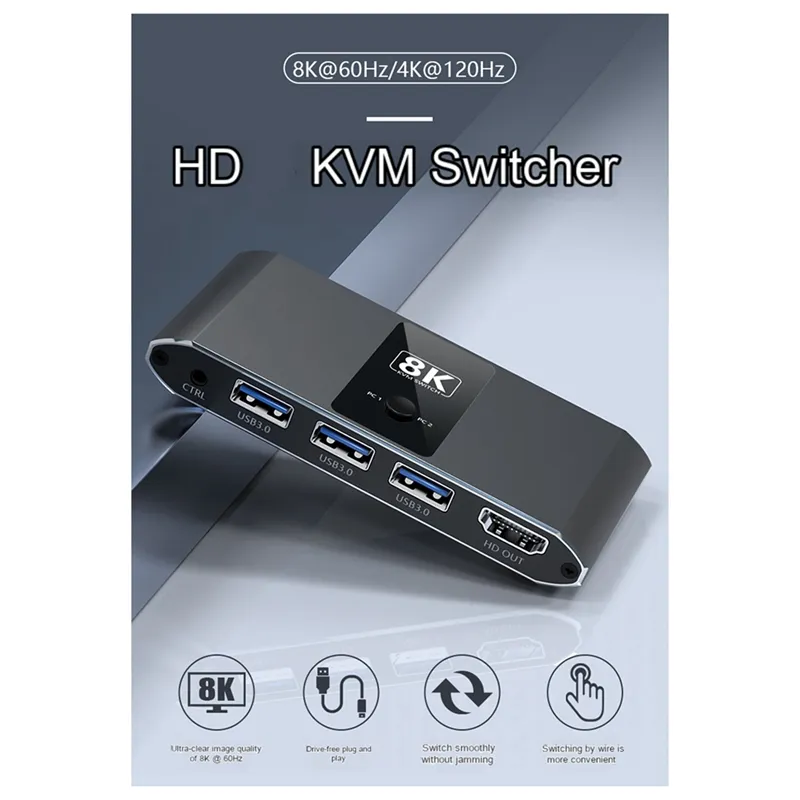 KVM Switch 8K Ultra Clear 2 In 1 Out 4K120Hz HDMI...