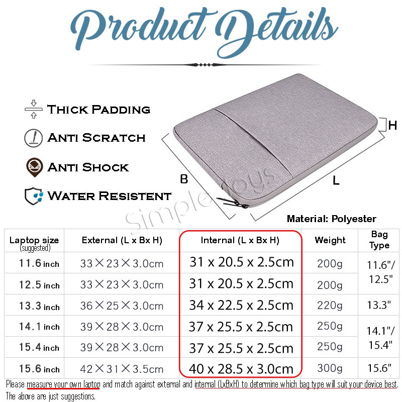 Laptop Cover Sleeve Anti Shock Waterproof Computer Bag