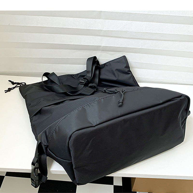 Durability:looks good Material:nylon, light weight The bag can use as backpack, hand carry or shoulder carry. It's 40cm x 44cm, I remember the same bag at Uniqlo is bigger a bit, still the size is acceptable, can put a lot of things, I wish it can be bigger a bit tho. It is light weight since it made by nylon. Friendly reminder: I ask question to the seller and they rarely respond. So be warned about that.