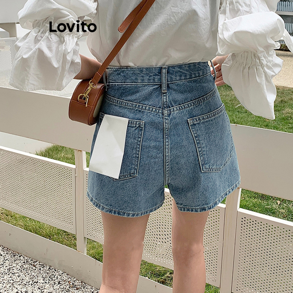 Lovito Casual Plain Pocket Denim Shorts for Women LNA19020 (Multi-color)