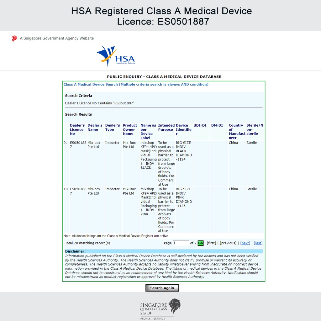 Performance:product looks good. Face masks was delivered very quickly within a couple of days after order. Well packaged & mask box was intact. The 50 pieces of face masks were also wrapped in plastic bag. Expires Oct 2025 which is long expiry date. Yet to try but quality of masks looks good. Recommended as its cheap and made in Singapore (support local products)!