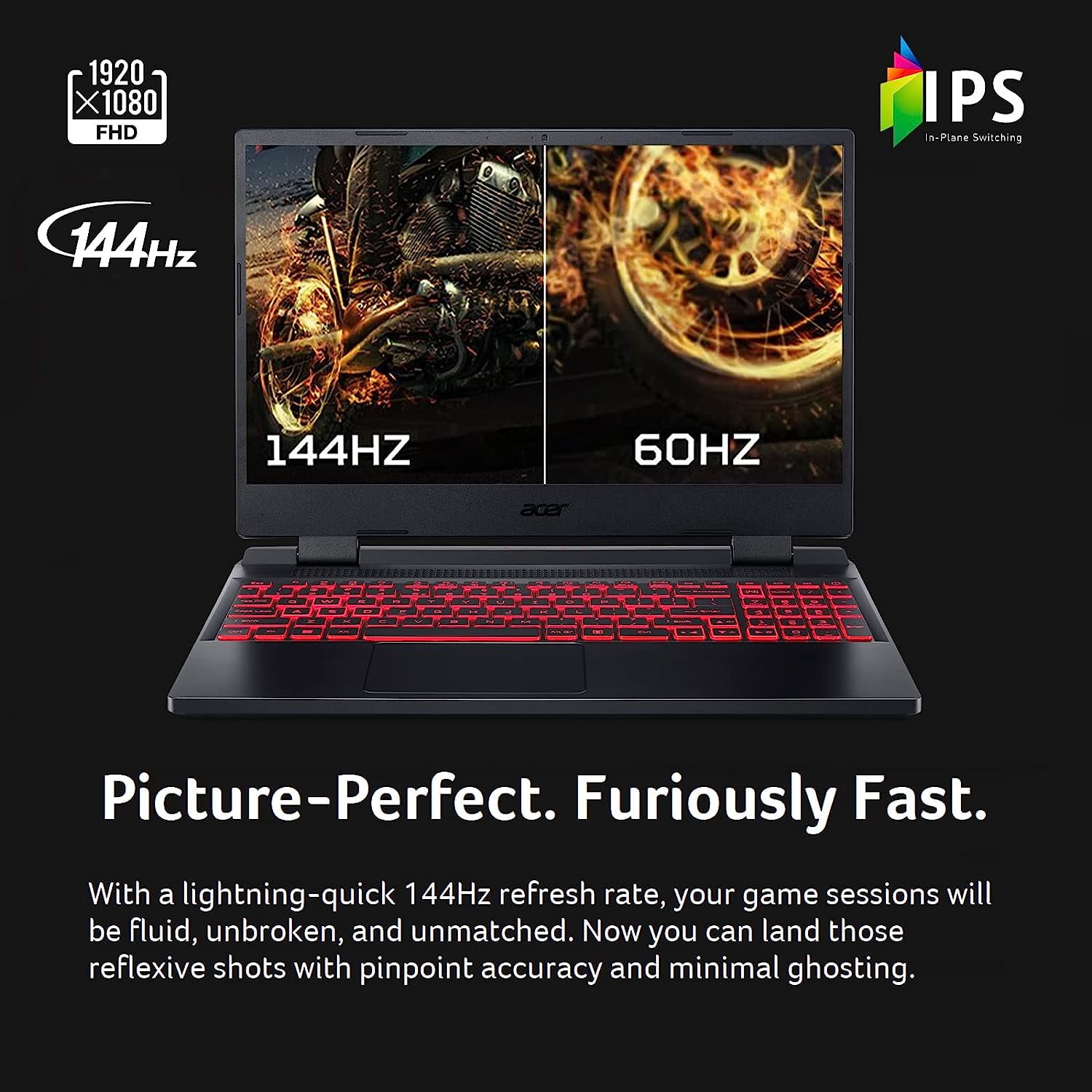 • Picture-Perfect. Furiously Fast: With the sharp visuals of a 15.6” Full HD IPS display with a lightning-quick 144Hz refresh rate, your game sessions will be fluid, unbroken, and unmatched.