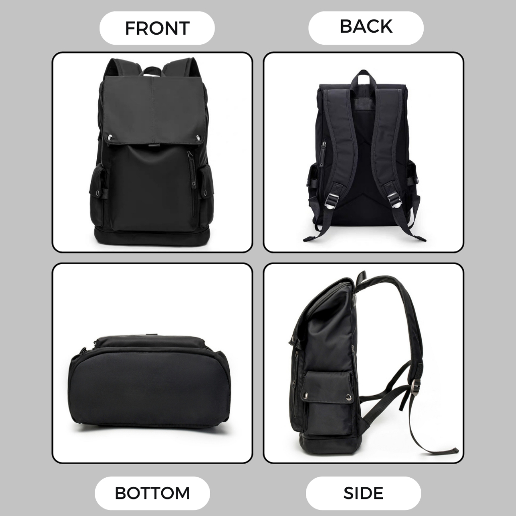 【SG STOCK】Black travel laptop backpack men bag pack Nylon Oxford cloth waterproof Fashionable with large casual capacity bag