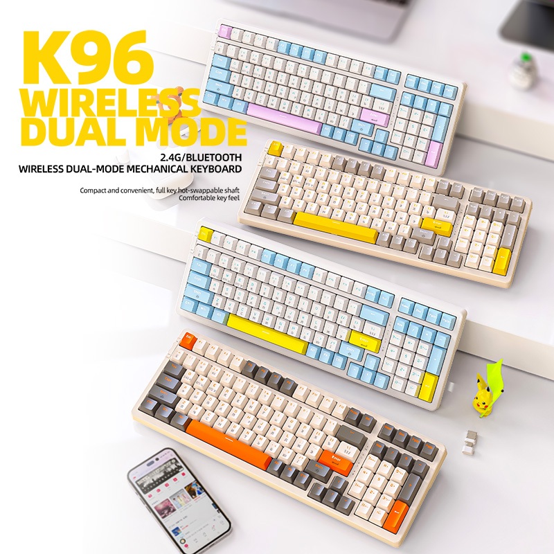 quick delivery! brought my 94% to work and needed one for my own desktop. very compact and pretty light. requires battery and is plug and play unless u want to use the Bluetooth for multiple device. comes with red switch, other sellers have other options of blue switch. keycaps looks printed well and of decent quality also. overall looks very comparable to my keychron :) just much lighter and no height adjustment + no rgb lights la very happy purchase!